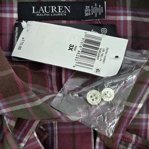 Lauren Ralph Lauren Brawley Button Up Down Shirt Womens Size 3X Plaid Old Money