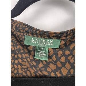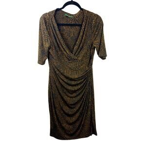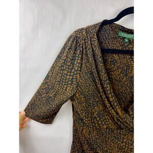Lauren Ralph Lauren, Brown Black Animal Print Dress, Polyester Blend, Ruched Draped Wrap Style