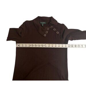 Discover the elegance and comfort of a Lauren Ralph Lauren Petite top. Crafted from 100% cotton, this piece offers sophisticated style with its unique button-accent design. Its rich brown hue is versatile and timeless, ideal for enhancing your wardrobe. Elevate your look with a touch of luxury and sophistication. In great condition.