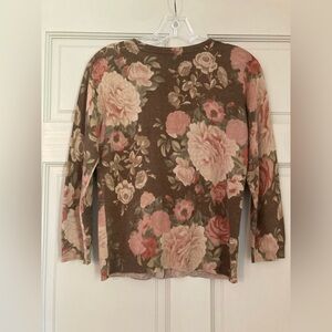 Lauren Ralph Lauren Brown Floral Silk Mixed Cardigan Sweater S