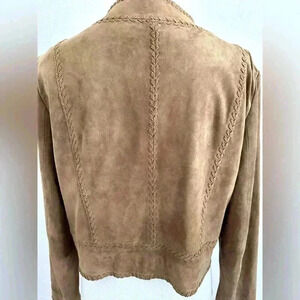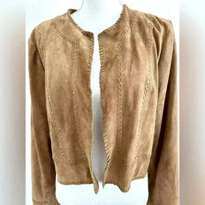 Lauren Ralph Lauren Brown Suede Open Front Cropped Jacket Stitched Trim Size 16