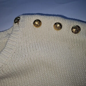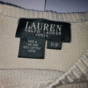 Lauren Ralph Lauren Button Detail Knit Sweater 100% Cotton Gold Buttons Cream Color good condition size PP
