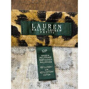 Lauren Ralph Lauren Petite Button Front Leopard Print Skirt Sz 12 petite Pencil Knee Length