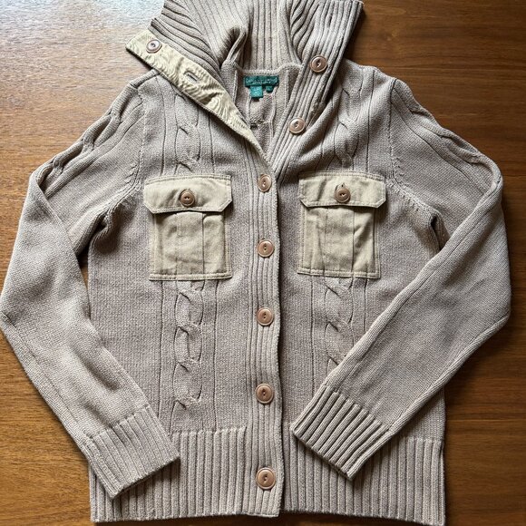 Lauren Ralph Lauren Button up funnel neck cardigan with pockets