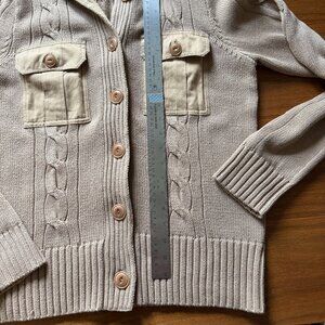 This sweater has such a nice drape! Lauren Ralph Lauren button up cardigan with pockets. Funnel neck.