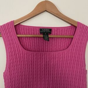 Lauren Ralph Lauren pink sleeveless cable knit sweater.
