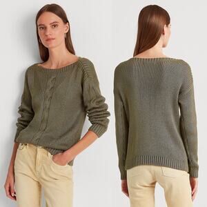 Lauren Ralph Lauren Cable-Knit Cotton-Blend Sweater in Olive Fern Size S
