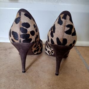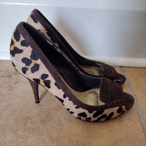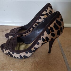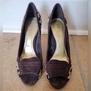 Lauren Ralph Lauren Calf Hair Leopard Print Peep Toe Heels Women's Size 7