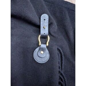 Lauren Ralph Lauren Cape Coat Women XXL Black Fringe Drape Wool Blend Mid Length