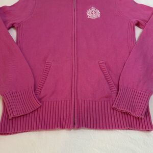 Lauren Ralph Lauren Cardigan Sweater Full Zip Pink Med Knit Sport Women
