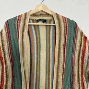 Lauren Ralph Lauren Cardigan Sweater Serape Womens Small Striped Linen Blend