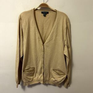 Lauren Ralph Lauren Cardigan Sweater Tan Silk Blend 3X Button Front Pockets