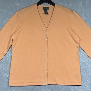 Lauren Ralph Lauren Cardigan Womens XL Peach Orange 3/4 Sleeve Knit Sweater
