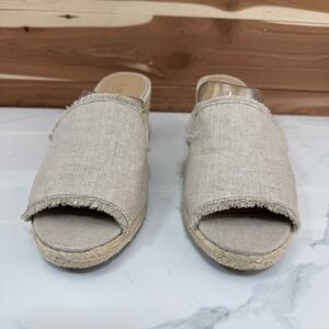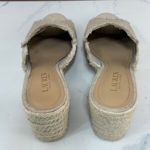 Lauren Ralph Lauren Carlynda Beige Linen Wedge Espadrille Sandals Size 9.5B