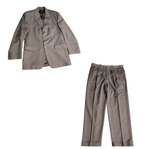 Elevate your professional wardrobe with this Lauren Ralph Lauren charcoal sheen suit, purchased from Lord & Taylor and crafted with exquisite attention to detail. This two-piece set features a classic 3-button blazer with a tailored silhouette and matching pleated cuffed trousers for a timeless, sophisticated look. Perfect for the office, presentations, or any formal event where style and professionalism matter.