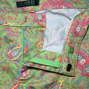 Lauren Ralph Lauren Chino Pants, Paisley & Floral Design, Women's Size 14. Stretch, No Pockets, Button and Hook & Eye Close.