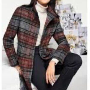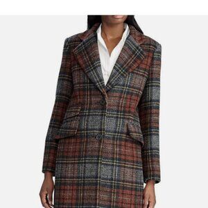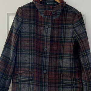 Lauren Ralph Lauren Classic Blanket Plaid Wool Reefer Winter Coat Sz 14