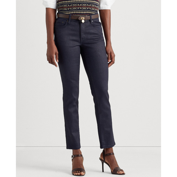 Lauren Ralph Lauren Coated Mid-Rise Straight Ankle Jeans Lauren Navy Wash Size 2