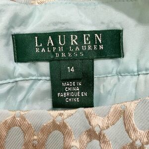 Lauren Ralph Lauren Cocktail Dress Brocade Metallic Aqua Blue & Gold Sz 14