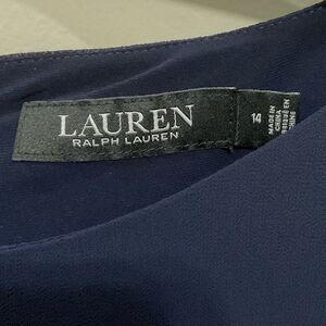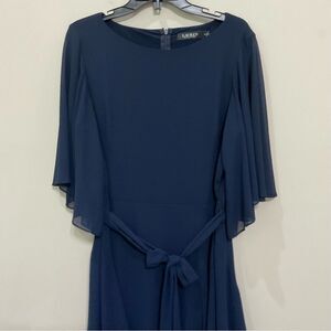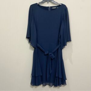 Lauren Ralph Lauren Cocktail Dress Mandie Navy Blue Ruffled Knee-Length Sz 14