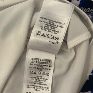 Short sleeve jersey georgette knee length dress in white and blue abstract floral print