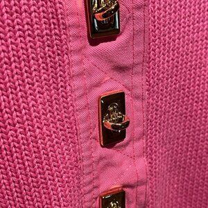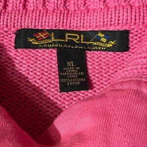 Lauren Ralph Lauren Collared Jewel Tone Pink Knit Sweater with Gold Clasp Closure and Ribbed Collar Cuffs and Waist sz. XL is stunning in person. It is very classy and comfortable and will soon be your favorite. Gold clasps add to the great design. Great with jeans or a skirt.