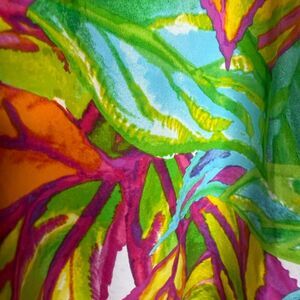 Beautiful, vibrant top sure to brighten your day. One metal detail on tie is missing. In excellent condition otherwise.
