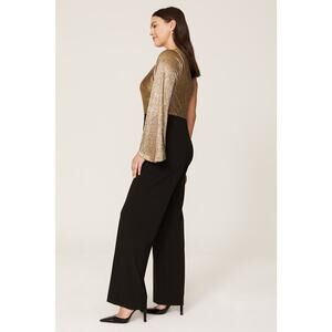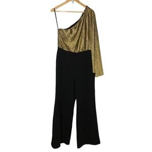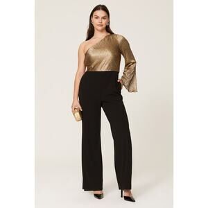 Lauren Ralph Lauren Copper One Shoulder Jumpsuit Gold Black 12