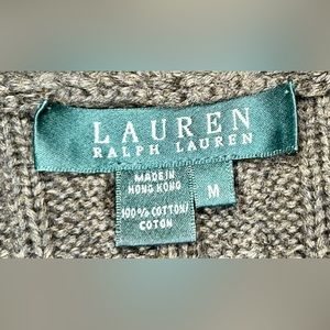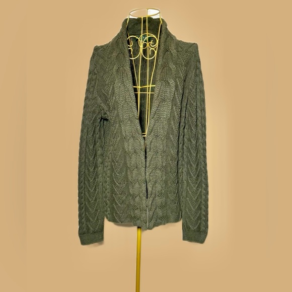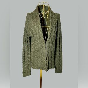 Lauren Ralph Lauren Cotton Cable Knit Green Cardigan with Hook & Eye Closure, M