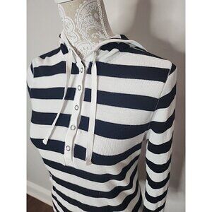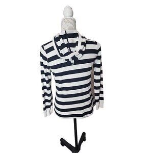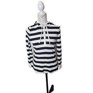 Lauren Ralph Lauren Cotton Hoodie White Black Striped Snaps Pullover Women's PM