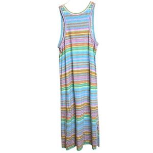 Really cute LRL logo print on chest maxi dress. Colorful stripes & sleeveless.