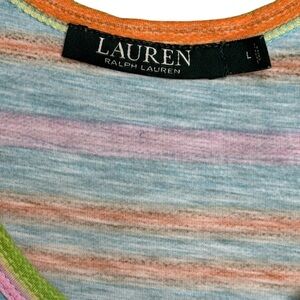 Lauren Ralph Lauren Cotton Sleeveless Colorful Striped Midi Dress size L Logo