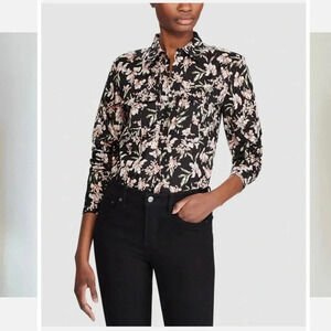 Lauren Ralph Lauren Courtenay black with pink floral design top size small