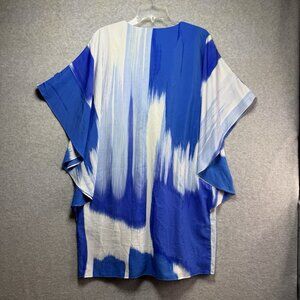 Lauren Ralph Lauren Cover-up Women M Resort Tunic Kaftan Dress Kimono Blue White