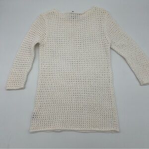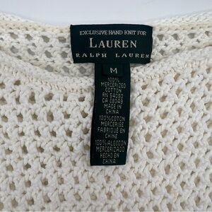 Lauren Ralph Lauren Cream Crochet Tunic Sweater M Hand Knit 100% Cotton Boho