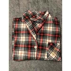 Lauren Ralph Lauren Cream Plaid Crown Red Green Collar Pajama Set Womens L