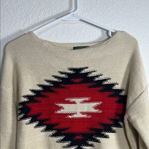 Lauren Ralph Lauren Cream Sweater with Red Geometric Design Small