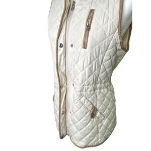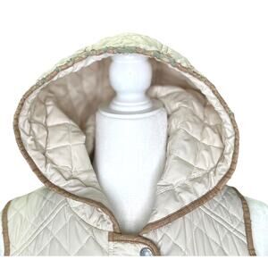 Lauren Ralph Lauren Cream Tan Quilted Hooded Vest Small Pockets