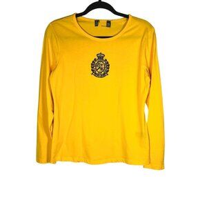 Lauren Ralph Lauren Crest Top Yellow XS Old Money Varsity Preppy Classic Chic