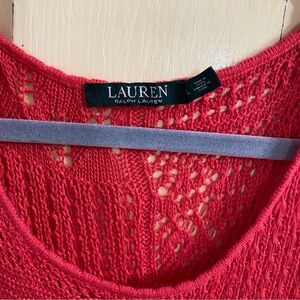 Lauren Ralph Lauren Crochet Coral Midi Length Dress Open Knit Sleeveless Large