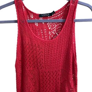 Lauren Ralph Lauren Crochet Coral Midi Length Dress Open Knit Sleeveless Large