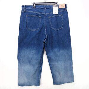 Lauren Ralph Lauren Cropped Jeans Women's Pants 20W Ombre Blue Wide Leg Raw Hem