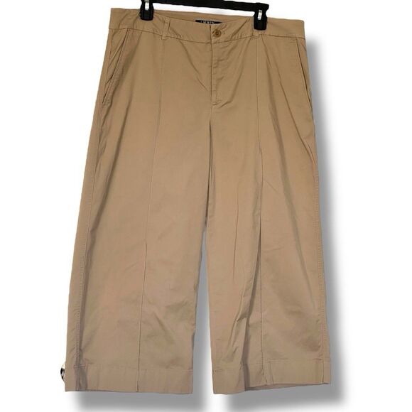 Lauren Ralph Lauren Cropped Wide Leg Pants Size 14 Tan Khaki Lightweight
