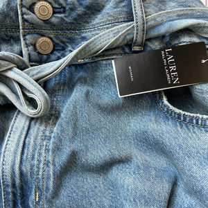 Made from soft denim, Lauren Ralph Lauren's stylish cropped jeans are cut for a fashionable wide-leg silhouette and feature an elegant self-tie sash at the waist.