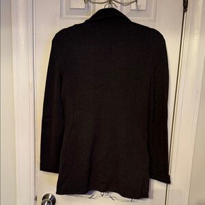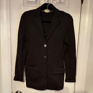 Sleek dark gray blazer with button closure. Tailored fit for a polished look. Ideal for professional settings. Excellent condition