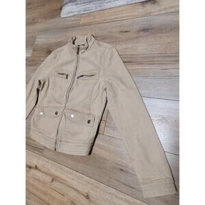 The Lauren Ralph Lauren Denim Trucker Jacket in size M is a stylish and versatile addition to any woman's wardrobe. Made from durable denim with a soft cotton lining, this jacket features a classic solid blue color with button accents and a logo detail. The regular fit and biker style make it perfect for year-round wear, while the collared neckline and pockets add practicality to the timeless design. Machine washable for easy care, this jacket from Polo Ralph Lauren is a must-have for any fashion-conscious woman looking for a high-quality designer piece.