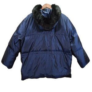 Lauren Ralph Lauren Down Fill Coat Women Plus 1X Hooded Iridescent Blue Puffer