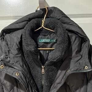 Lauren Ralph Lauren Down Full Zip and Button Black Puffer Coat XLarge
