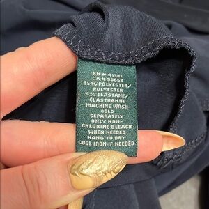 This elegant deep navy blue dress by Lauren Ralph Lauren features a sophisticated draped design, perfect for any occasion. The long sleeves add a touch of class and warmth.