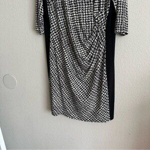 Lauren Ralph Lauren Dress 22W Black White Houndstooth Side Panel ShirredJersey